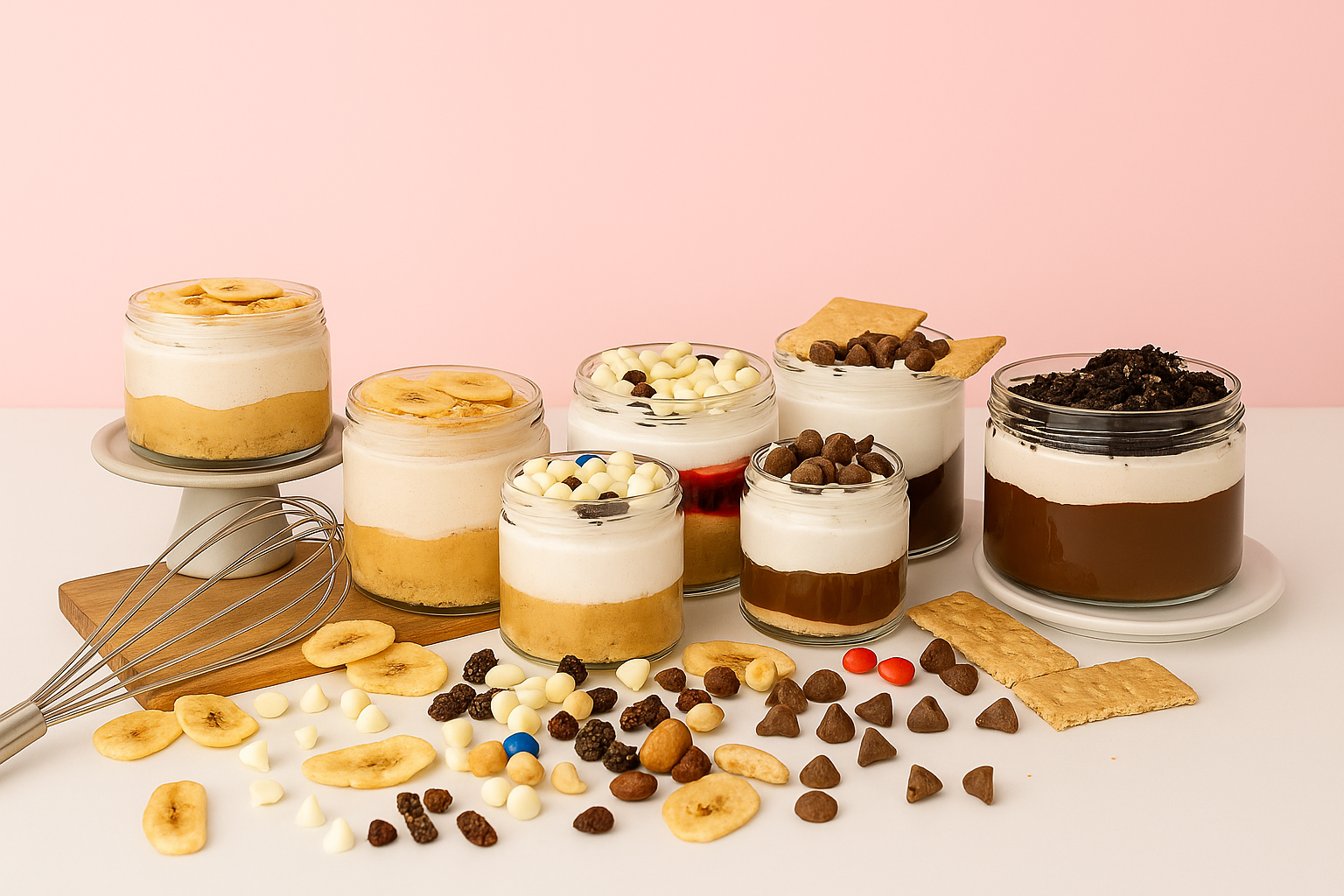 The Fluffin Flight includes six 8-ounce jars — five of our signature core flavors, plus one rotating special flavor of the month. From the nostalgic warmth of Campfire Kiss to the bold crunch of Trailblazer, this curated sampler is the ultimate flavor adventure.